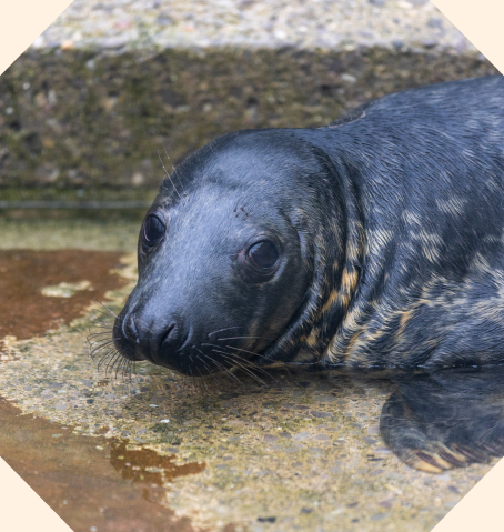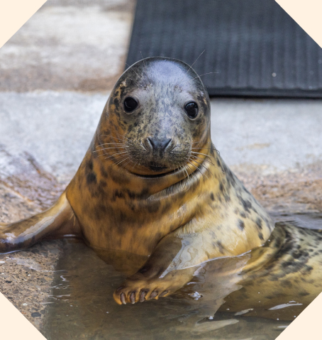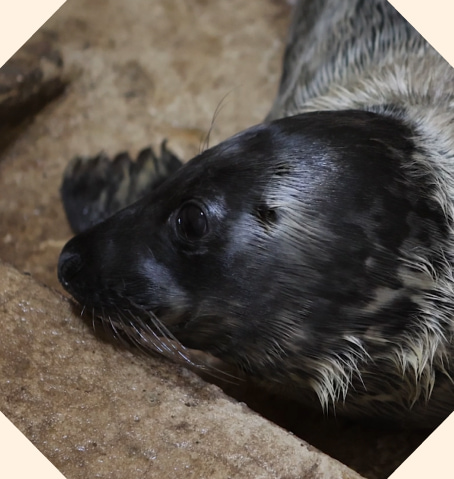 Grey seal pups are born with white coats to keep them warm. Our pups are all quite young, and though they’re losing their baby fur, they’ve still got tufts of scruffy fluff!