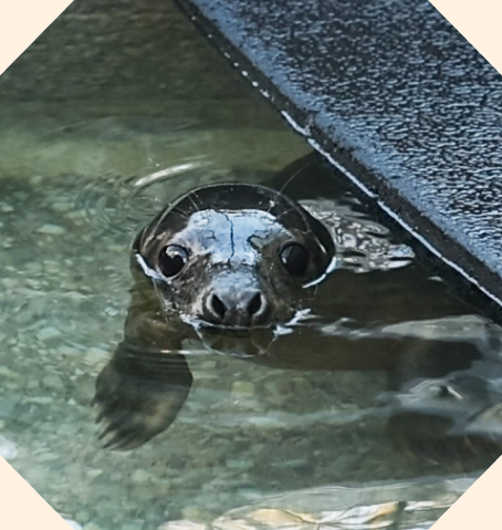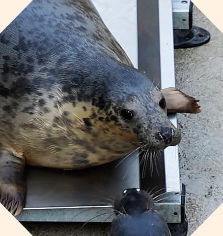 We’re keeping Calippo indoors, under a heat lamp, as he has an ear infection. He’s getting regular vet checks, which he doesn’t like being our shyest seal – but it’s important we keep a close eye on him.