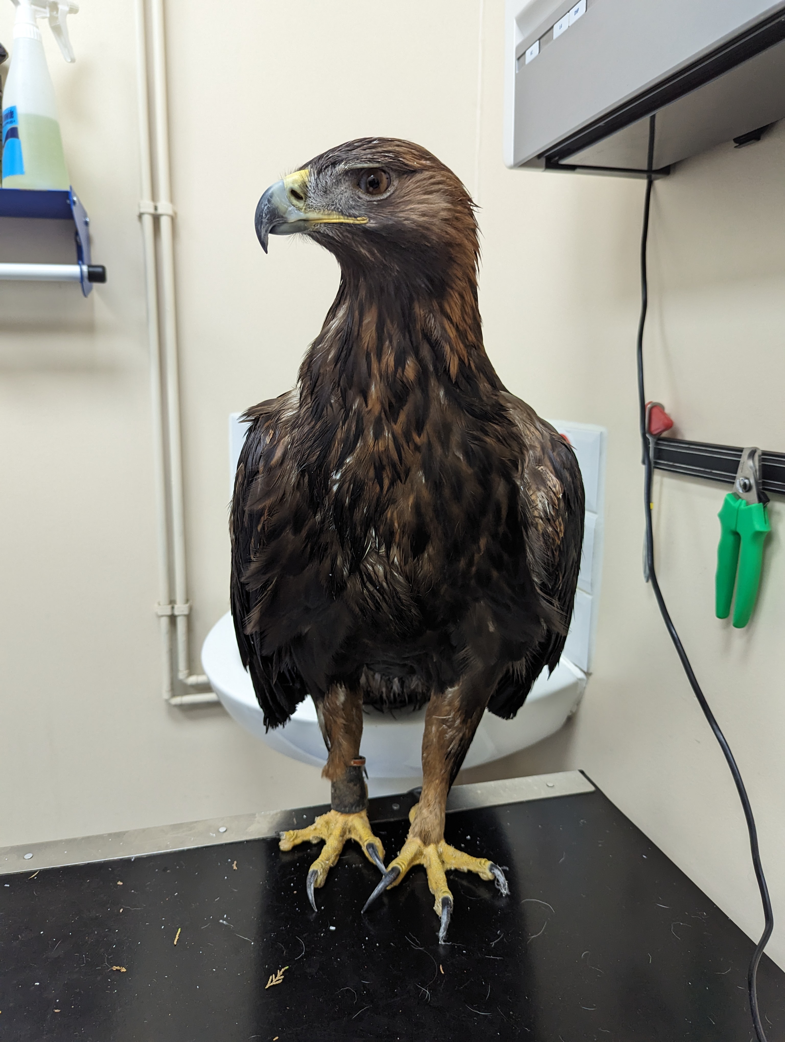 Someone once reported that a golden eagle was trapped in a bush in their garden. Calls about eagles usually turn out to be smaller birds of prey, so I was shocked to see an actual golden eagle. He was so big he came up to my hip!
